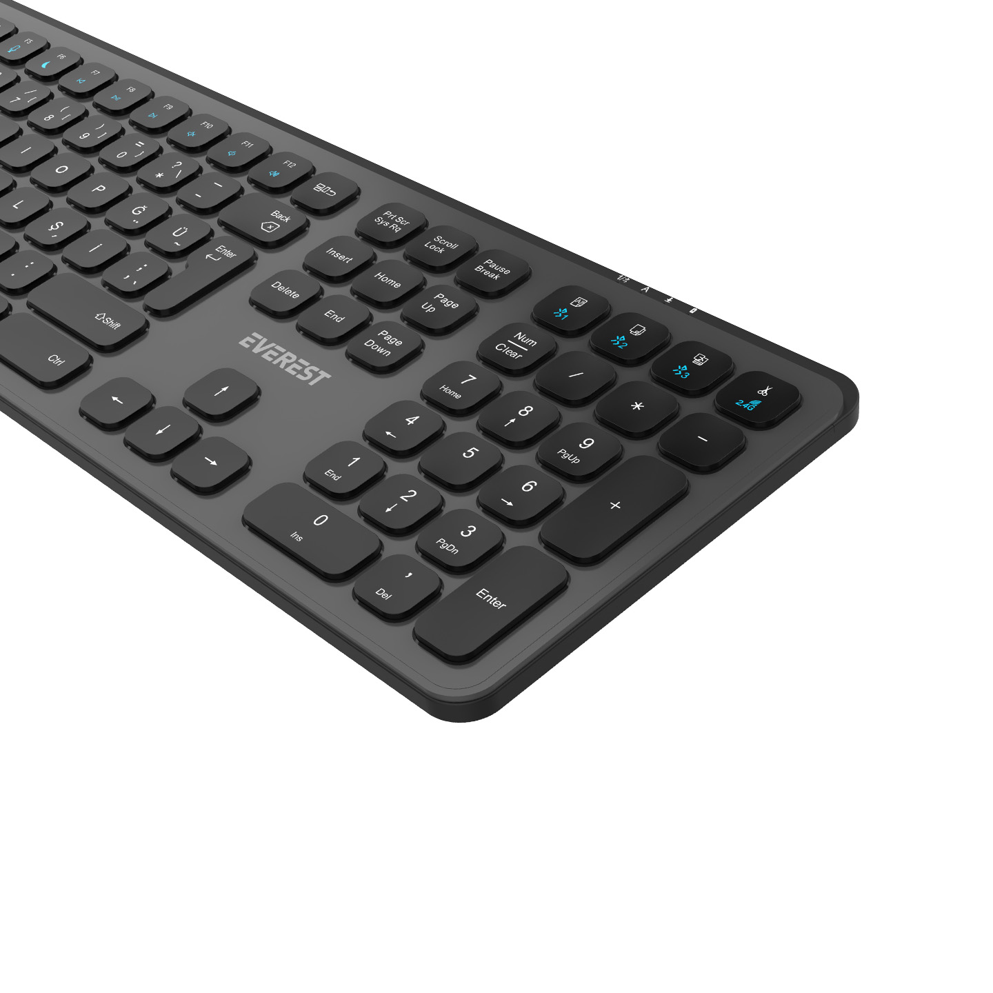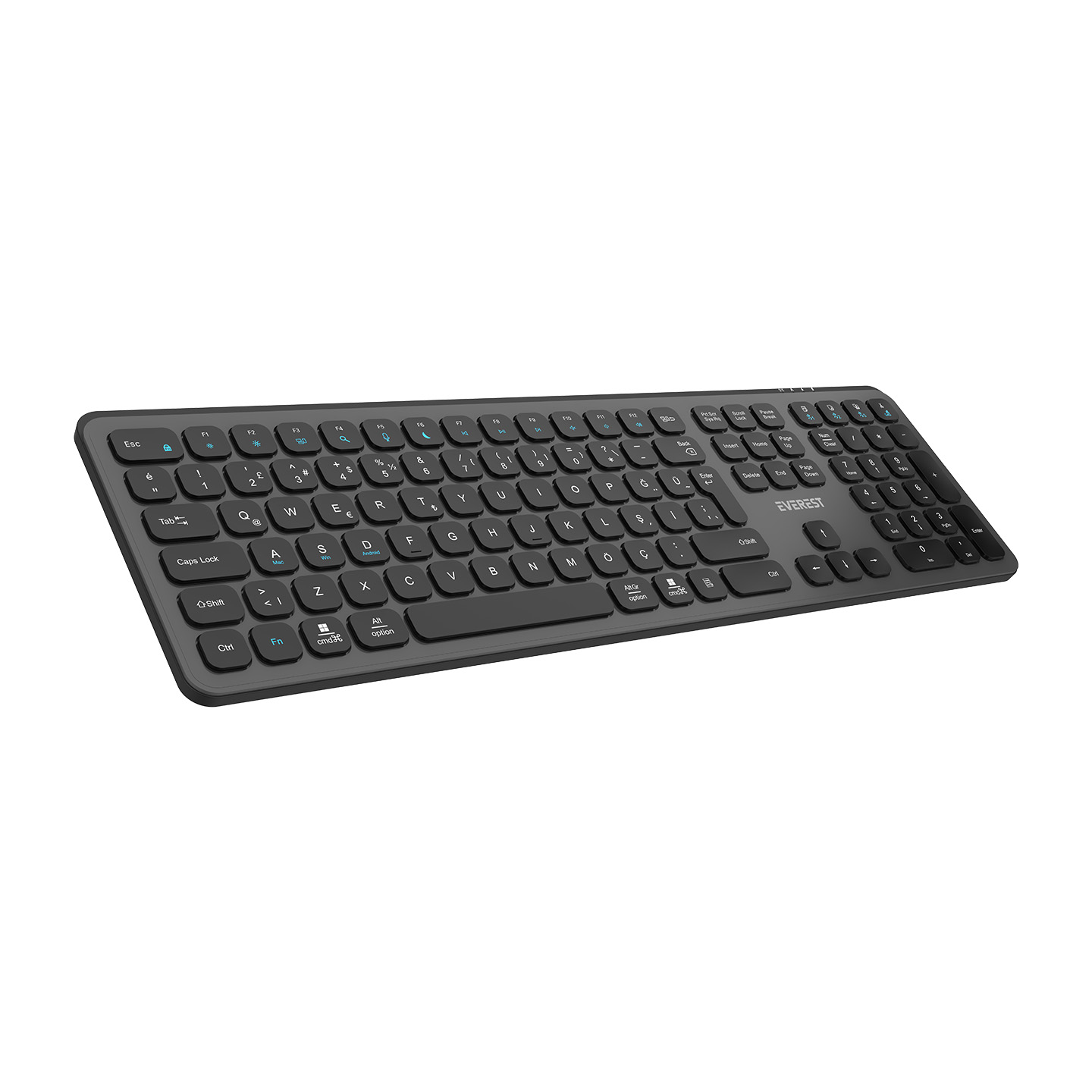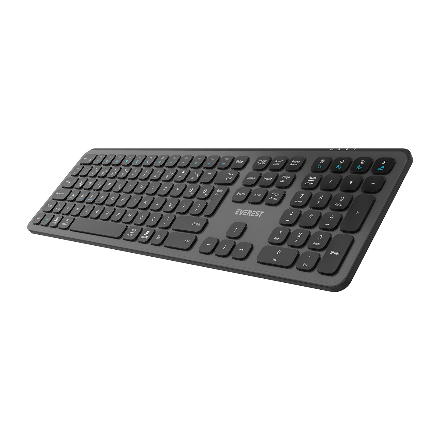 Everest KB-53 Gri/Siyah 2.4+BT1+BT2+BT3 Çoklu Cihaz Bağlantılı Q Kablosuz klavye